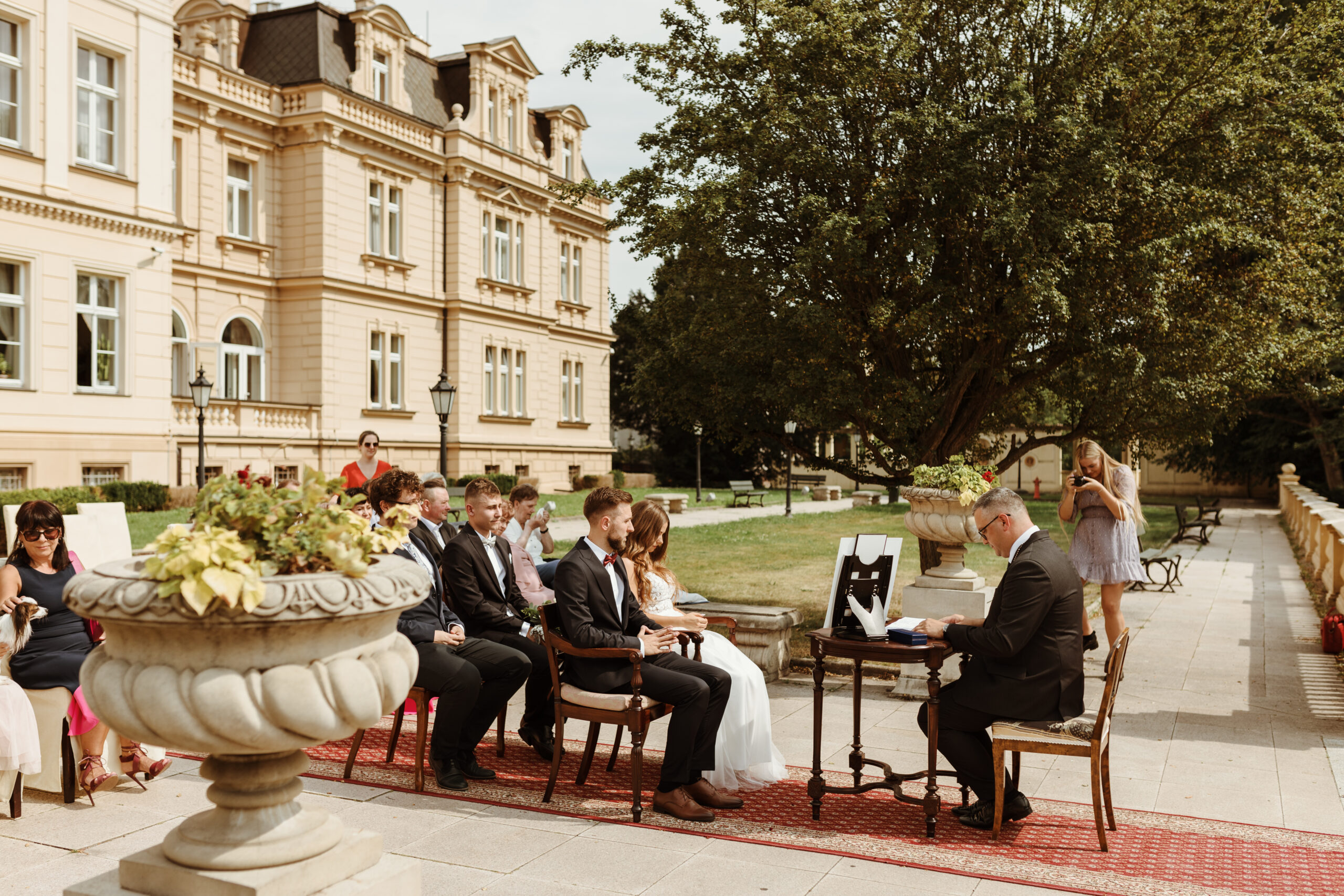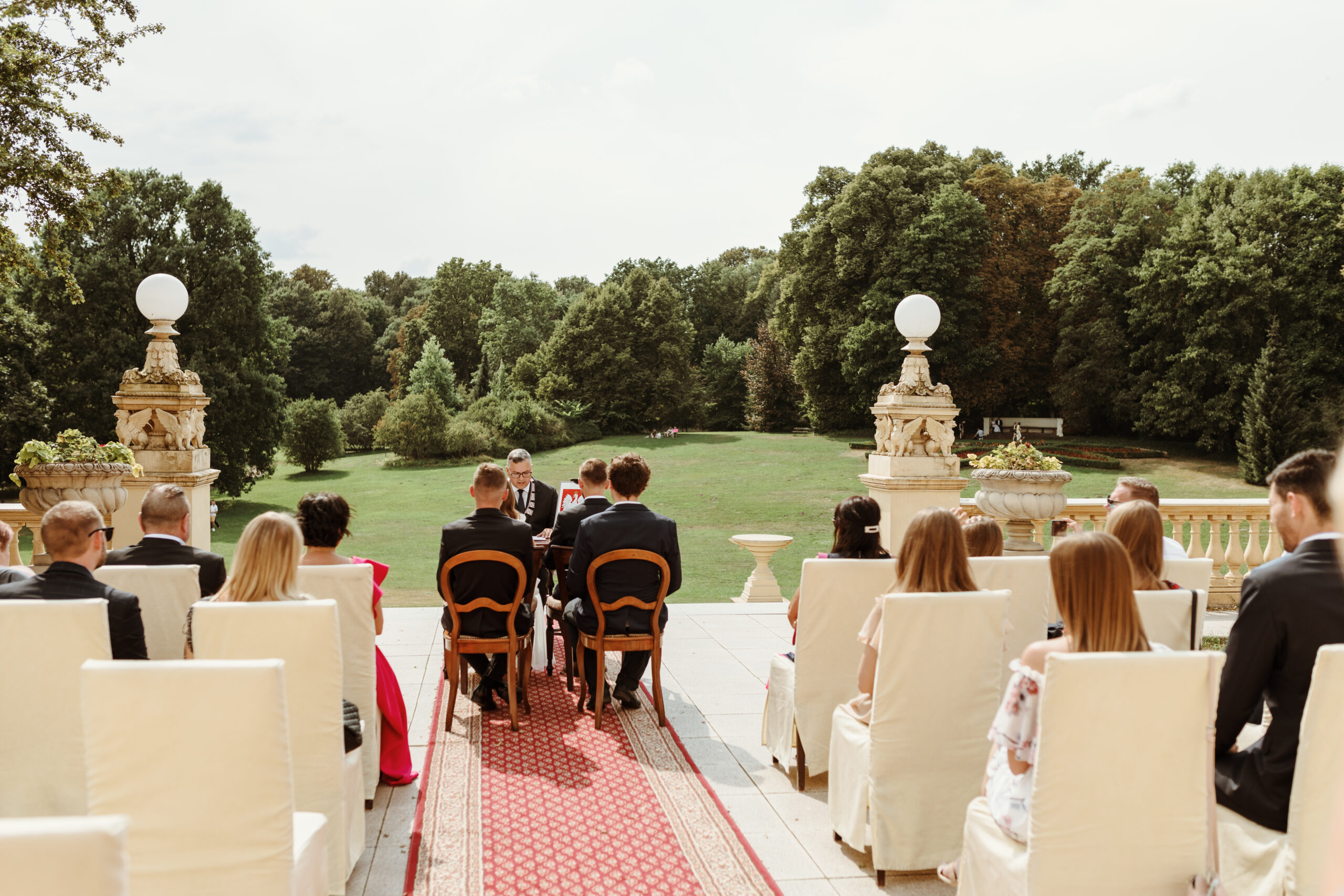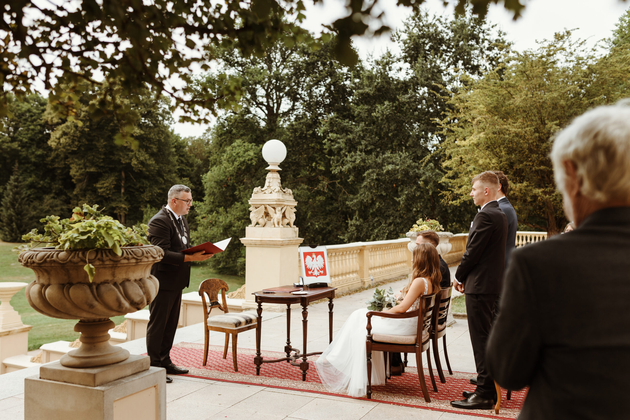Ceremonia, obiad weselny i poślubna sesja w plenerze.